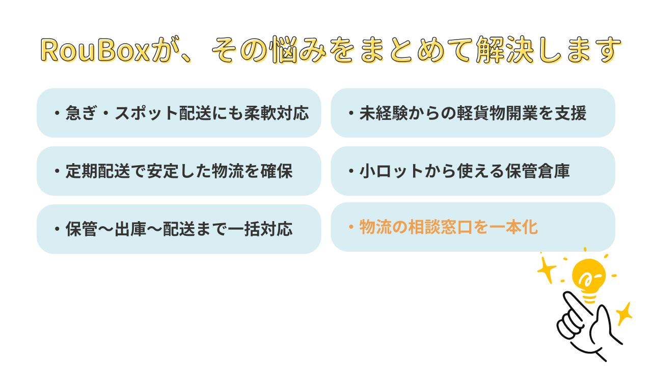 配送・保管・開業支援を一社で完結。無駄のない物流設計を実現します。 - 現場目線の実行力
